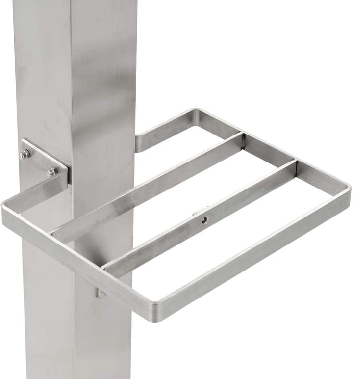 - Produkte eigenschaften: Farbe: Silbern Material: Edelstahl Säulenabmessungen: 8 x 8 x 95 cm (L x B x H) Grösse des oberen Regals: 28 x 10,5 cm (L x B) Grösse des mittleren Regals: 25,5 x 20 cm (L x B) Bodengrösse: 15 x 15 cm (L x B) Mit einer