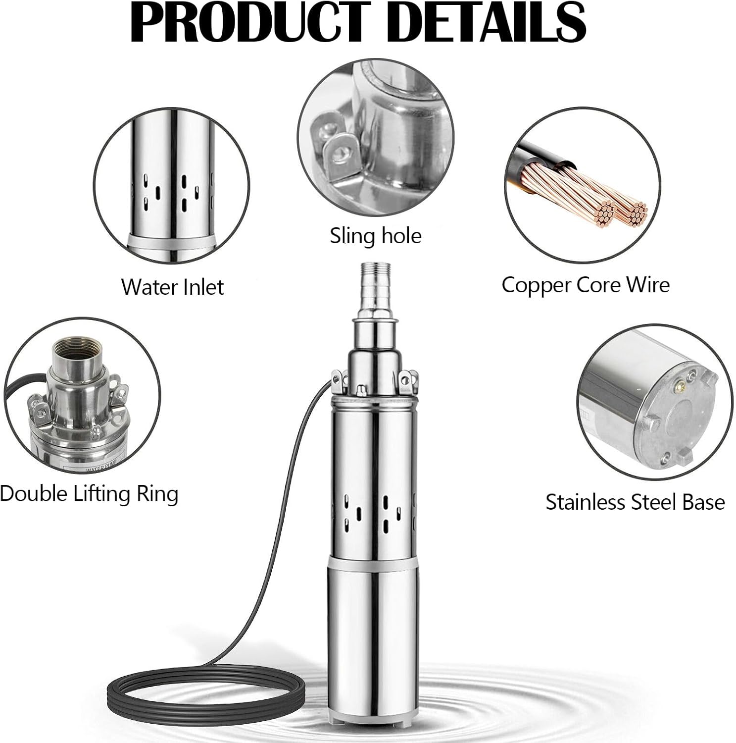 - đăHochwertiges Materială- Die Tiefbrunnenpumpe verfĂŒgt ĂŒber ein GehĂ€use aus Edelstahl der GĂŒteklasse 304. Sie ist rost- und salzwasserbestĂ€ndig und damit sehr langlebig und wasserdicht fĂŒr eine lange Einsatzdauer.Der hermetisch abgedichtete