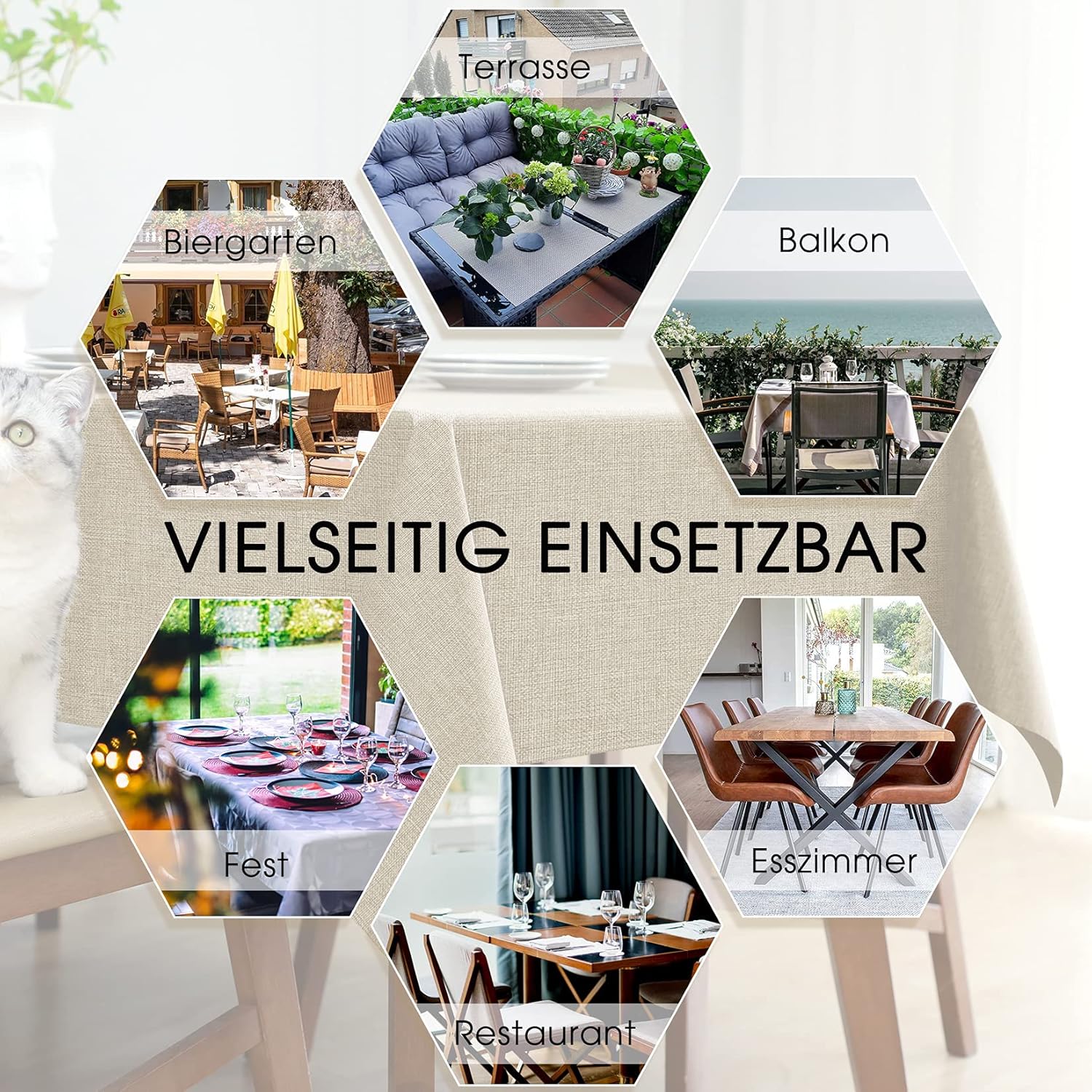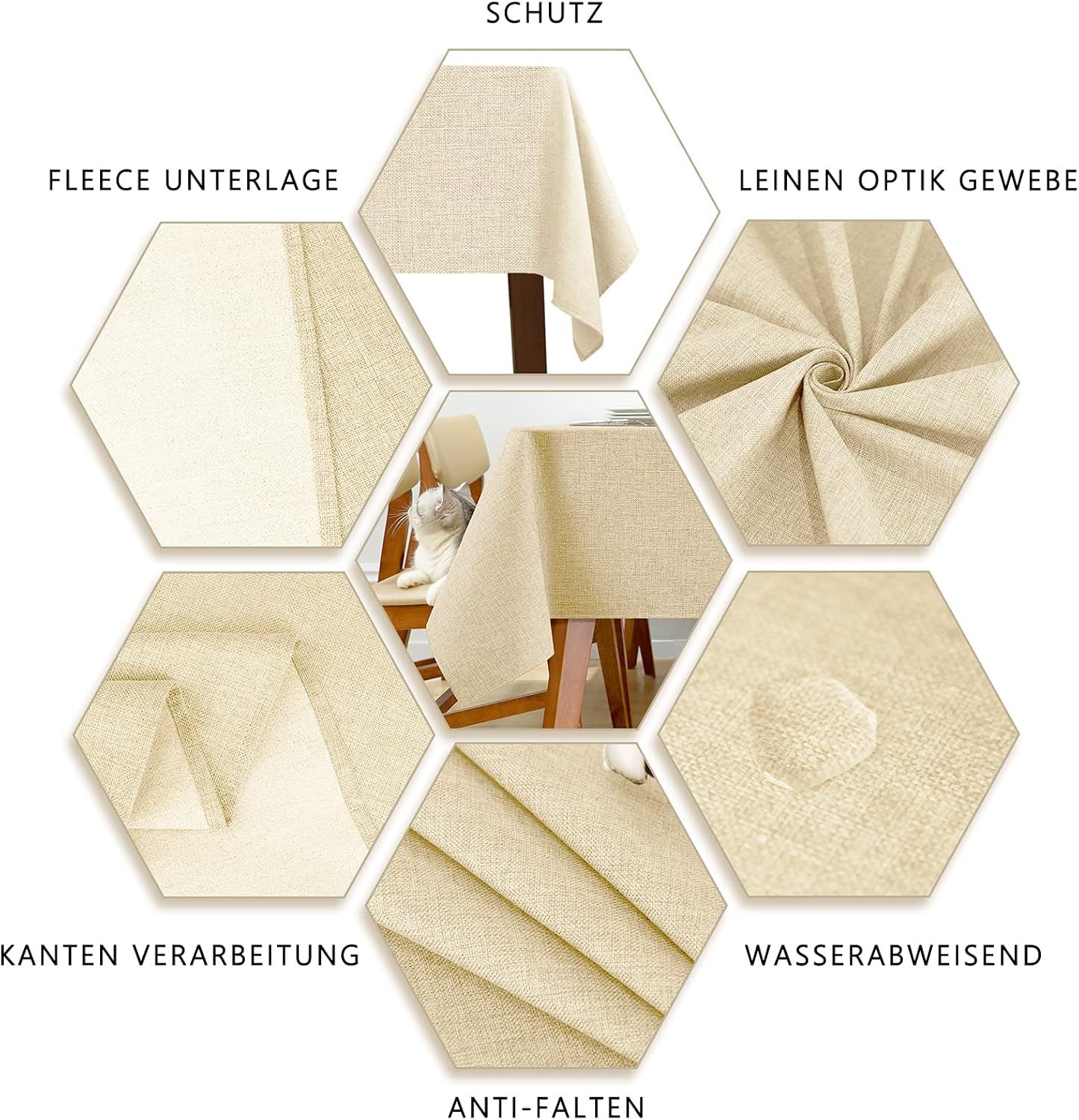 - 🍒HOHE QUALITÄT: Die Leinen Optik Tischwäsche aus 100% Polyester, Rückseite mit Fleece beschichtet. Die gut fallenden weichen Stoffe haben ein Flächengewicht bis zu 250g/m², Der Leinen Optik Stoff ist mit einem Knitterschutz ausgerüstet, es ist