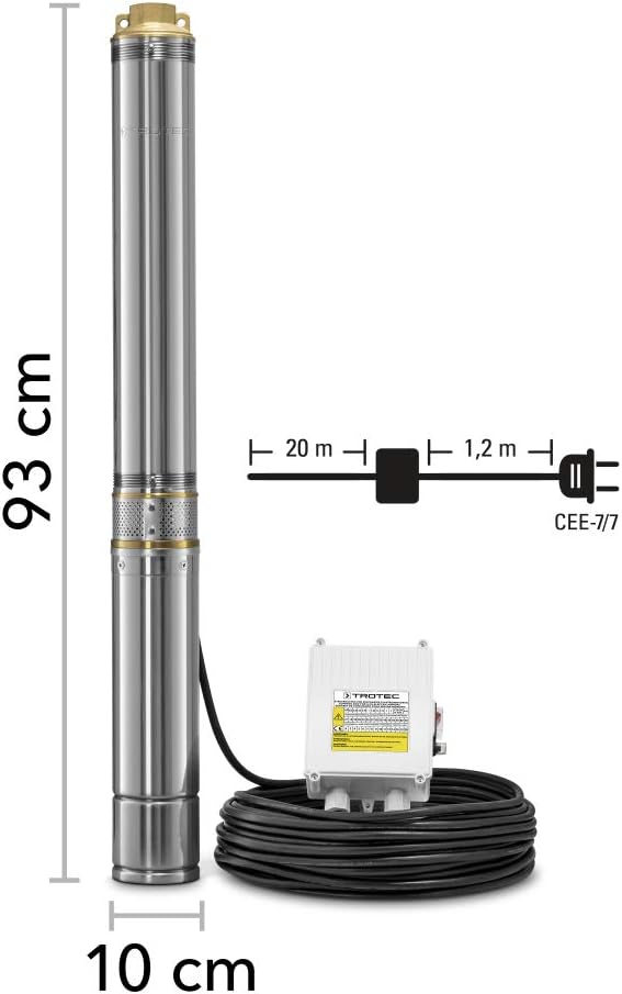 - Kompakte Grösse: Mit ihrem 10 cm Durchmesser passt die Tiefbrunnenpumpe in 11 cm Bohrlöcher und eignet sich für tiefe Brunnen