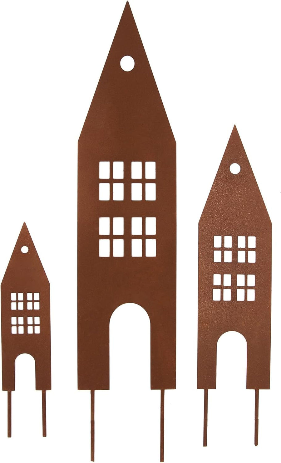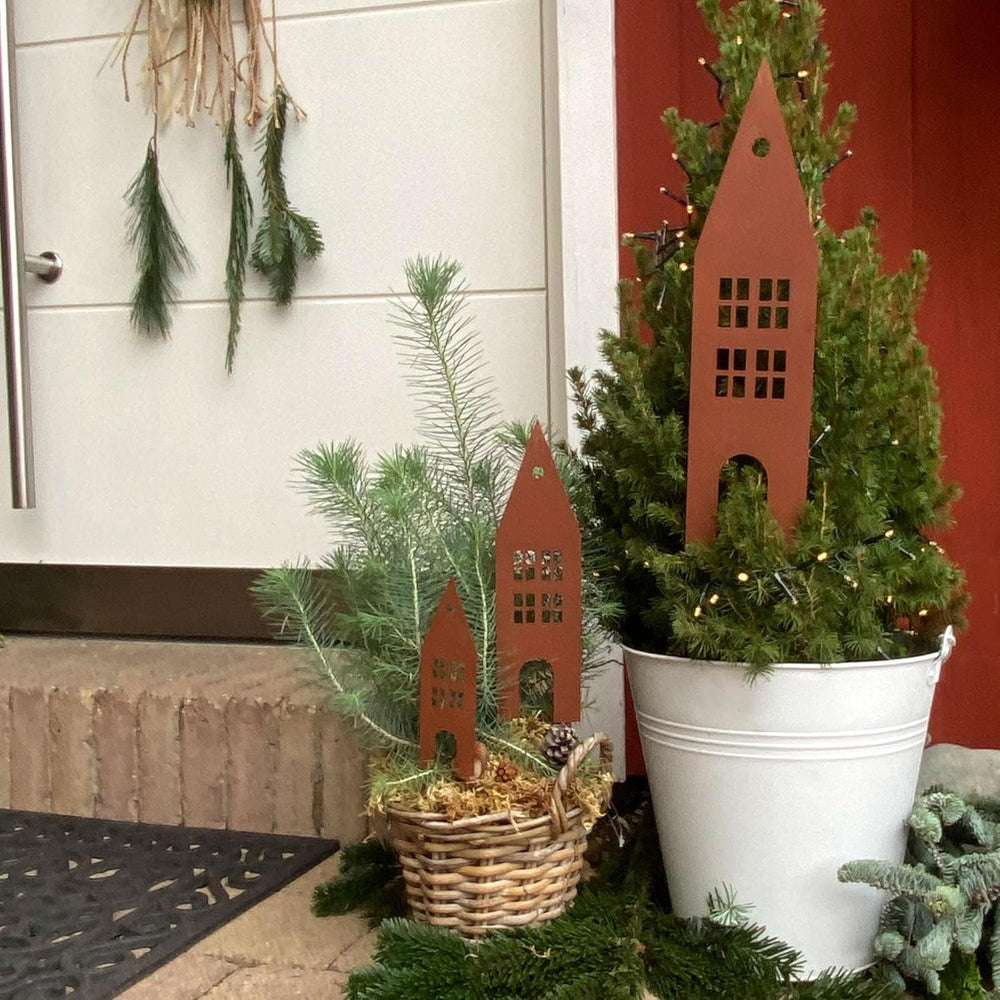 - ABMESSUNGEN: Die Masse der Häuser betragen ca. 40x10cm/27x7,5cm/17x5cm und die Stablängen ca. 12cm/10cm/8cm.