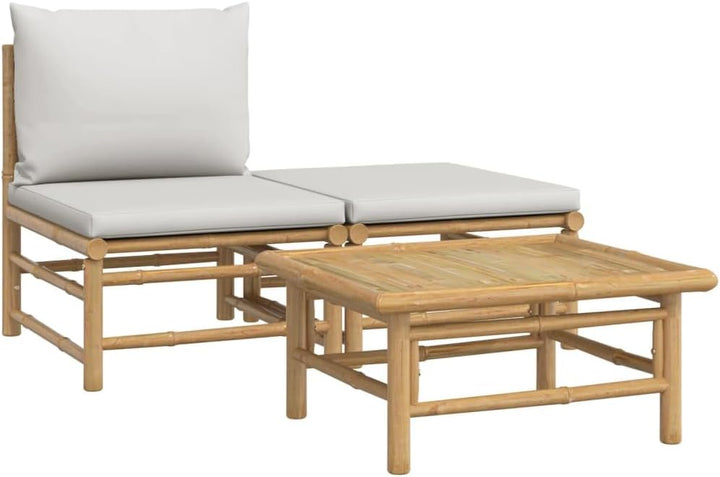 - Geniesse eine Tasse Kaffee oder Tee bei schönem Wetter in deinem Aussenbereich mit diesem eleganten Garten-Lounge-Set aus Bambus!