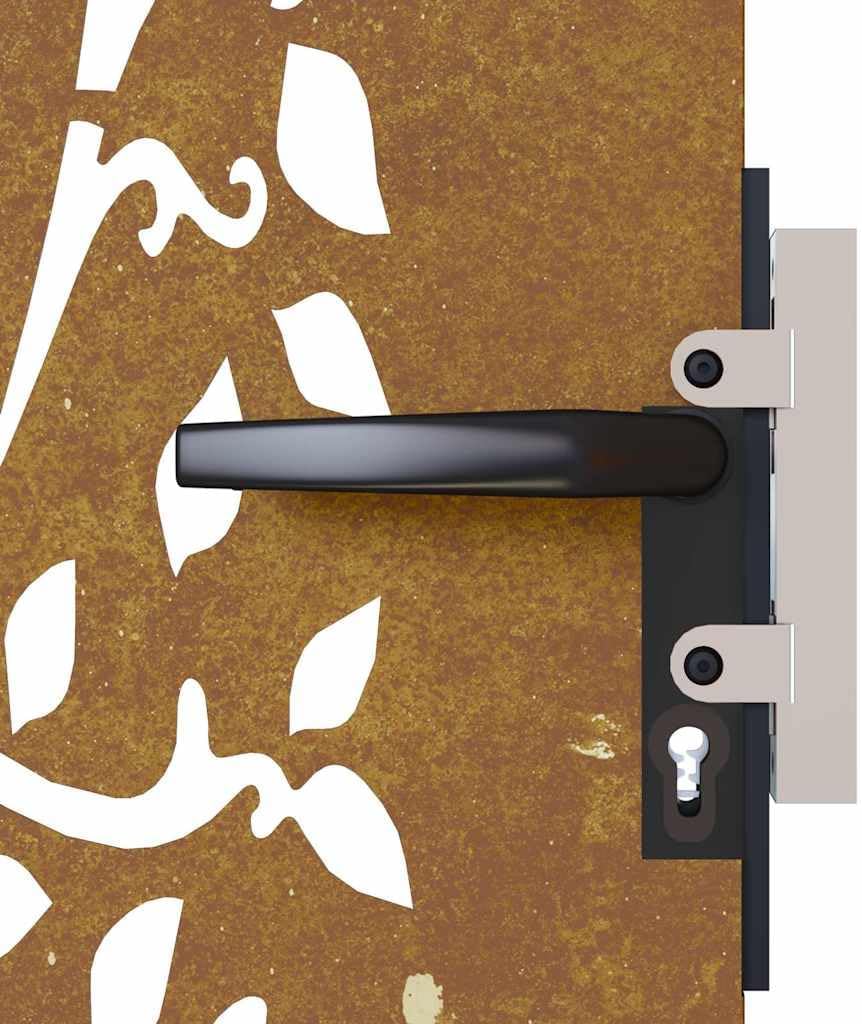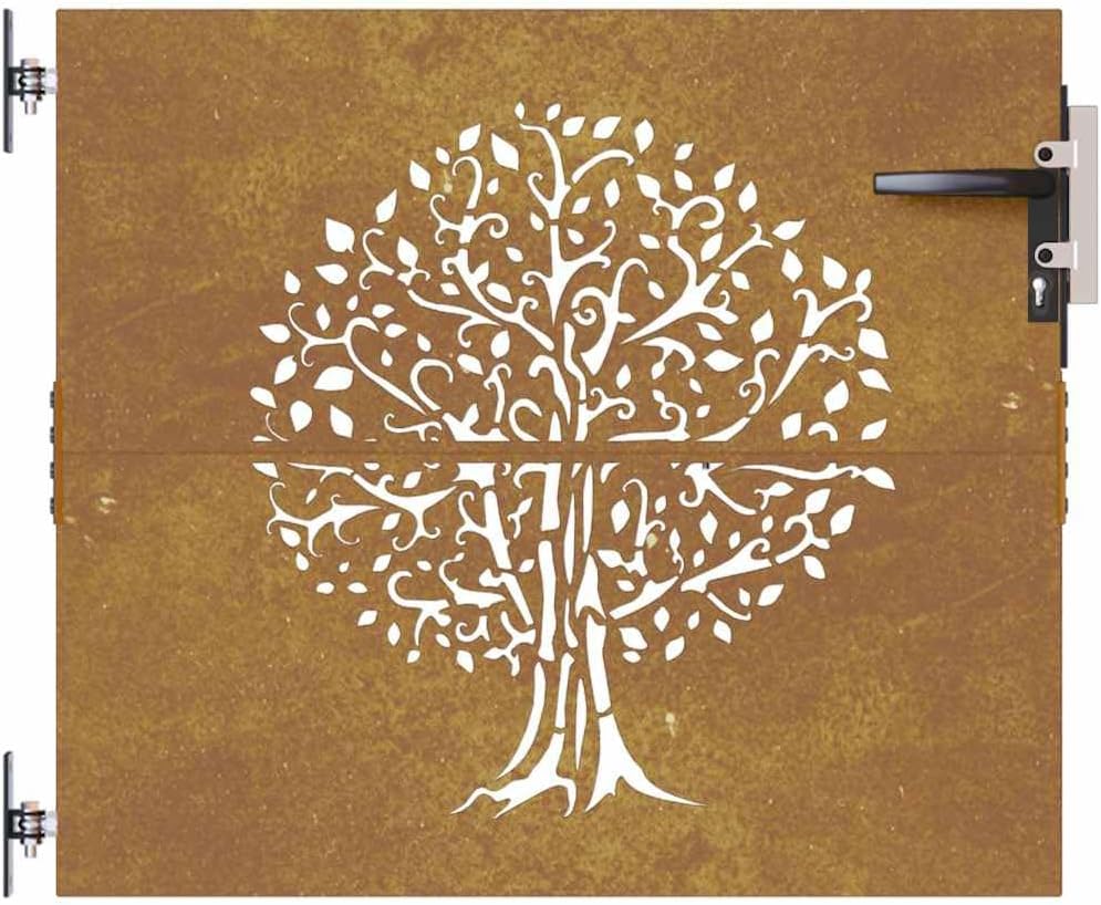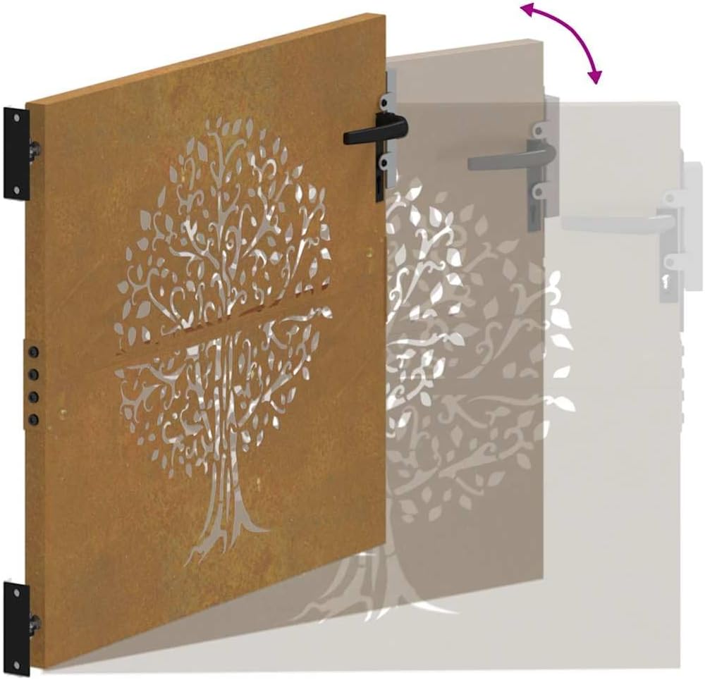 - Robustes Material: Das Metalltor ist aus Cortenstahl gefertigt. Cortenstahl ist ein wetterfester Stahl, der auf seiner Oberfläche eine rostige Schutzschicht gegen Korrosion bildet, sobald er der Witterung ausgesetzt ist. Du brauchst ihn also nicht zu