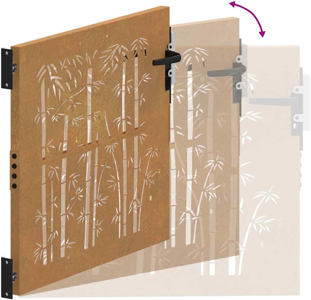 - Robustes Material: Das Metalltor ist aus Cortenstahl gefertigt. Cortenstahl ist ein wetterfester Stahl, der auf seiner Oberfläche eine rostige Schutzschicht gegen Korrosion bildet, sobald er der Witterung ausgesetzt ist. Du brauchst ihn also nicht zu