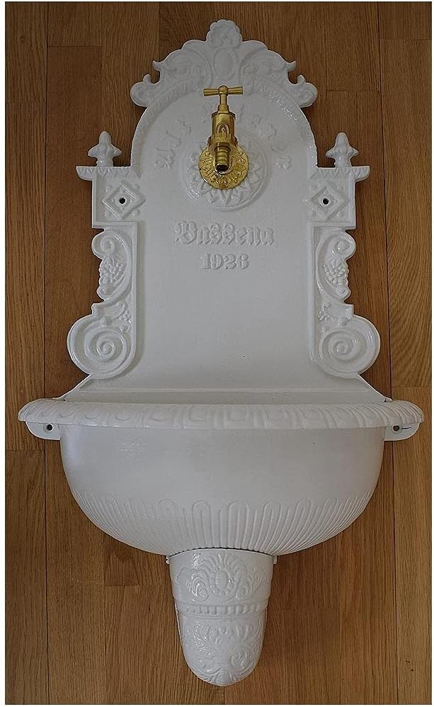 - Graf von Gerlitzen Alu Bassena Wand Brunnen Wandbrunnen Weiss Grün Kran Ablauf 201WG1-Gross