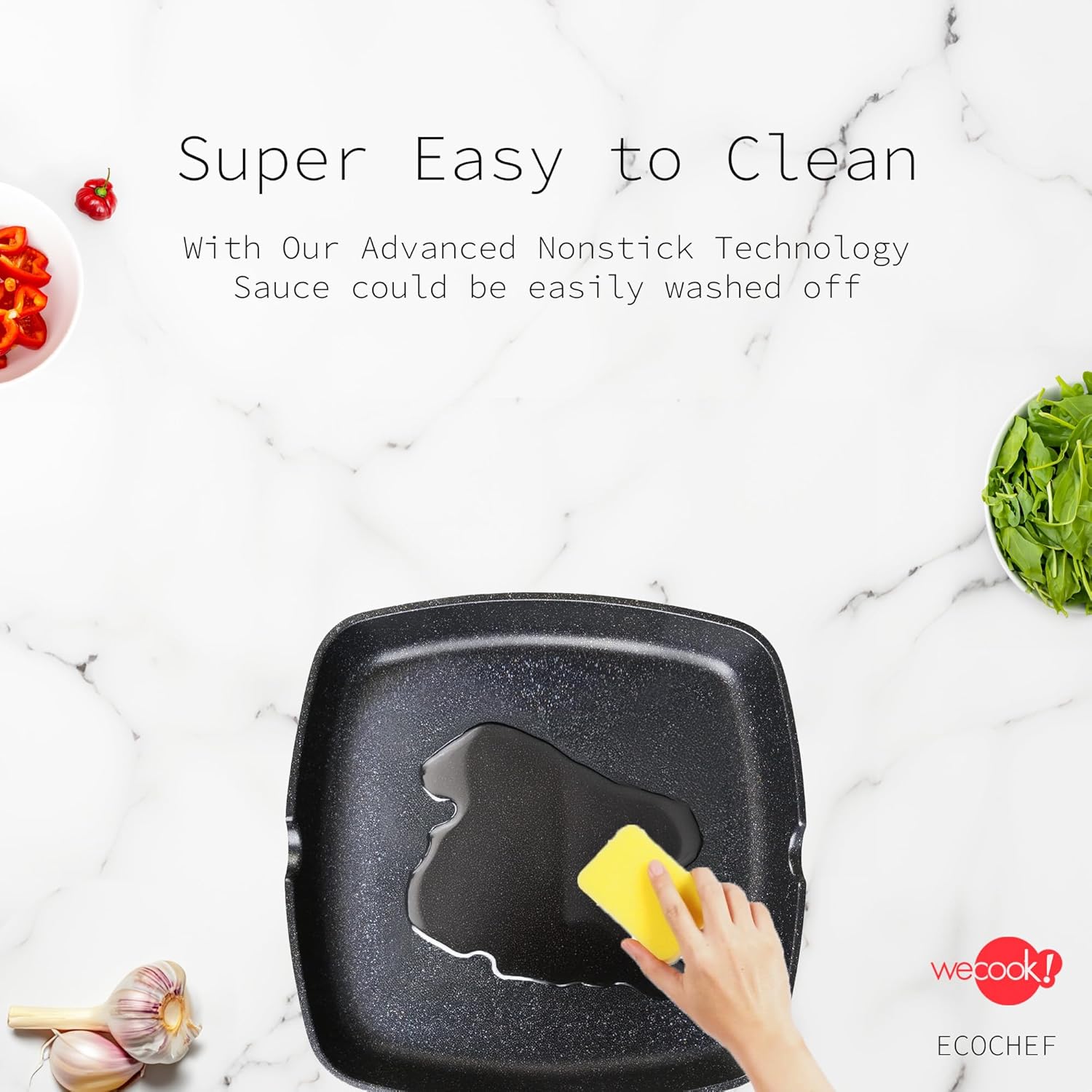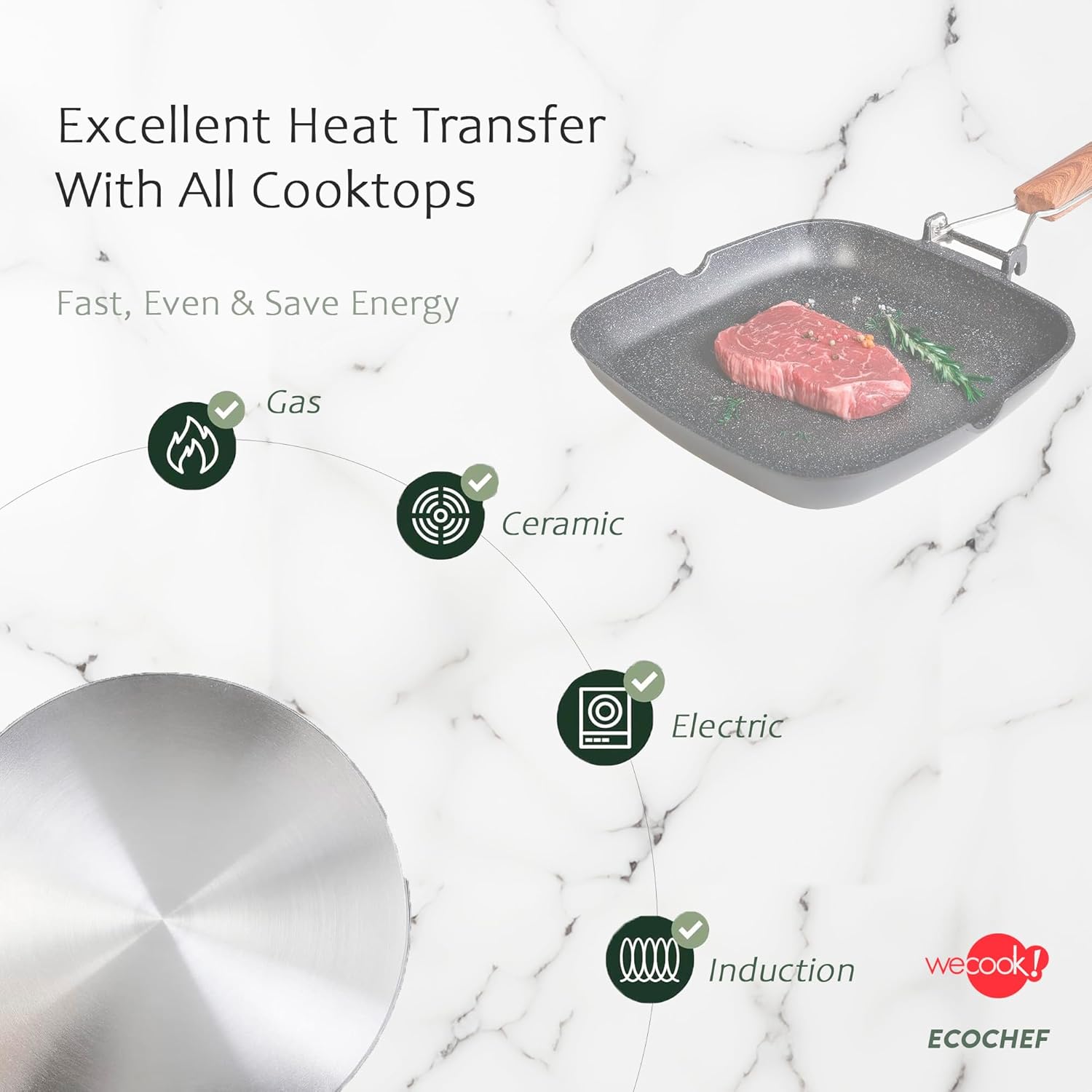 - 【HOCHWERTIGER ALUMINIUMGUSS】Wecook Ecochef Induktions grillpfanne mit Antihaftbeschichtung aus nicht verformbarem Aluminiumguss mit hervorragender Verarbeitung und maximaler Widerstandsfähigkeit, verstärkt mit Titan, einem nicht krebserregenden