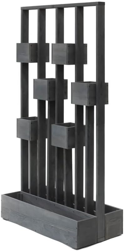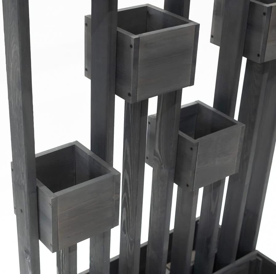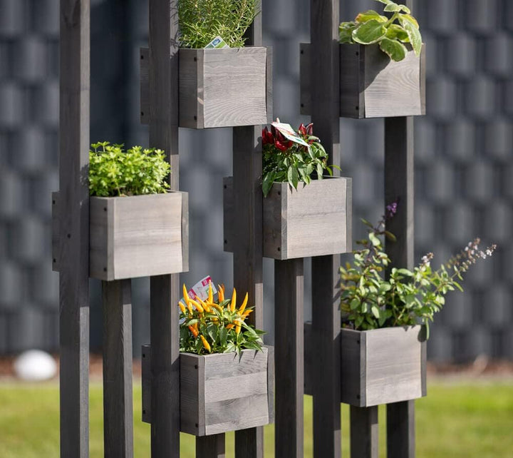PRODUKTBESCHREIBUNGEN Westmann Holz Pflanzkasten Pflanzenwand Ulla | Grau | 90x45x170 cm Die dekorative Holz-Pflanzenwand Ulla von Westmann ist ein echter Alleskönner, denn die hybride Funktion aus vertikalem Garten und Sichtschutz ermöglicht Ihnen universelle Einsatzmöglichkeiten. Pflanzenwand, Sichtschutz oder Grundstücksbegrenzung – du entscheidest, wie du die vielseitige Pflanzenwand von Westmann verwenden möchtest. Die moderne Konstruktion der Pflanzwand ist aus hochwertigem Kiefernholz gefertigt, und passt sich dank der dezenten Farbgebung perfekt an dein Grundstück an. 2 grosse Blumenkästen bilden den stabilen Sockel der Pflanzwand, und fixieren das mit 6 Pflanzkästchen horizontal bestückte Holzgestell zuverlässig. Die kleinen Blumenkästen eignen sich hervorragend zum abwechslungsreichen Bestücken mit bunten Blumen, Kräutern, Salat oder hängenden Pflanzen. Lass deiner Kreativität beim Bepflanzen einfach freien Lauf, und kreiere so dein individuelles Deko-Objekt. Besonderheiten: - Kiefernholz | FSC - zertifiziert - Pflanzwand, Sichtschutz oder Grundstücksbegrenzung - Modernes Design, ansprechende Farbgebung - Problemlose Begrünung kleiner Flächen - Inkl. Schutzfolie für die Pflanzkästen - 6 kleine Pflanzkästen & 2 kleine Blumenkästen - In den Pflanzkästen finden Blumentöpfe bis Ø 15 cm Platz - Einfache Montage Im Lieferumfang enthalten: - Schutzfolie für die Blumenkästen