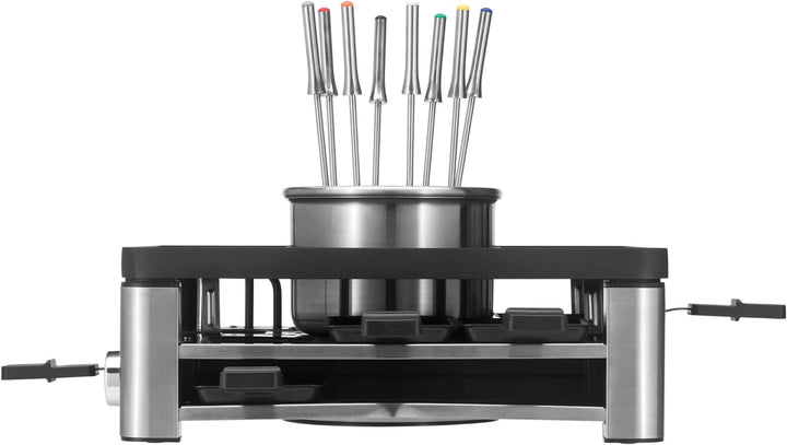 - Das Multifunktionsgerät aus Grill, Raclette, Fondue erspart viel Platz in jeder Küche. Es können dank der getrennter Temperaturregelung alle Funktionen separat oder gleichzeitig verwendet werden