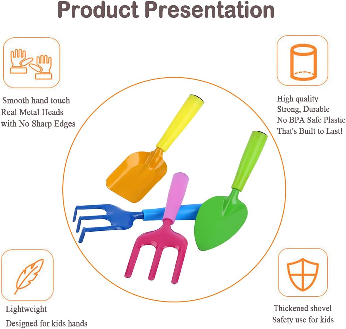 - Hochwertige, sichere Materialien - Die Sicherheit von Kindern hat oberste Priorität. Der Xinnian Kids Garden besteht aus Metallköpfen und Kunststoffgriffen ohne scharfe Kanten. Perfekt für Kinderhände mit glatten Oberflächen, die ihre Hände beim