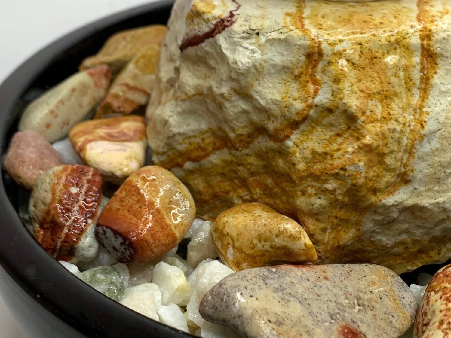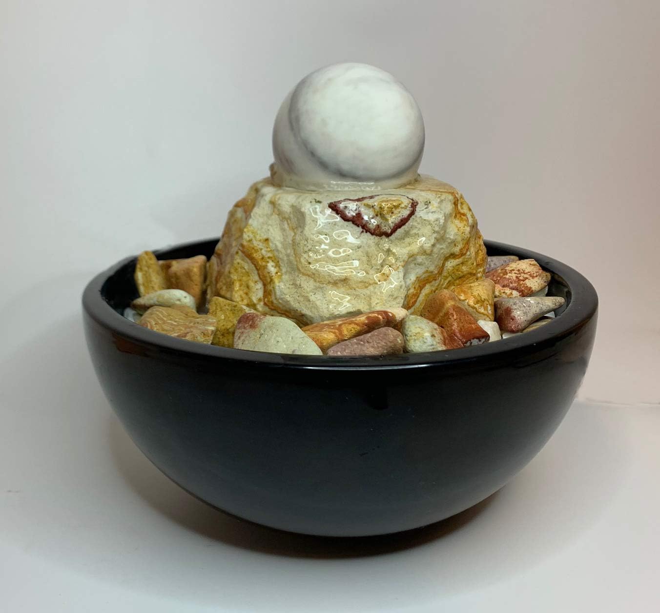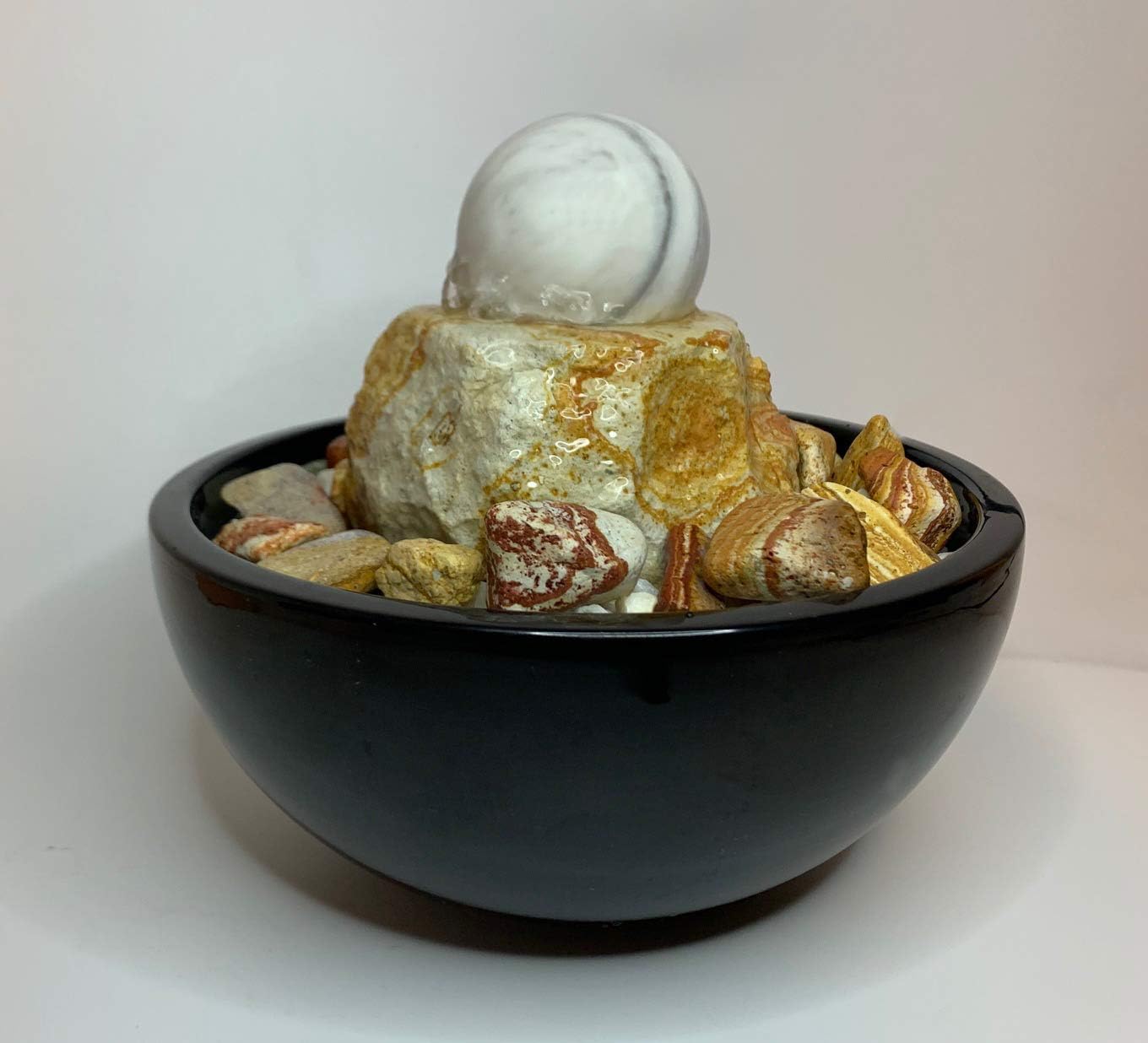 - helle wasserlaufende Marmor-Kugel im Durchmesser von 6,5 cm