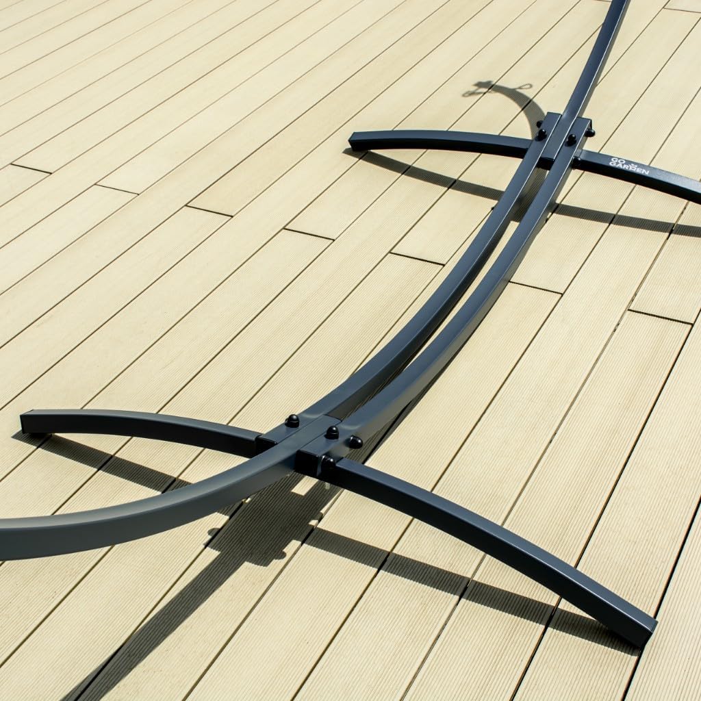 - ✨ Hochwertige Verarbeitung – wetterfest & belastbar - Mit einer Tragkraft von bis zu 250 kg und wetterfestem, pulverbeschichtetem Stahl ist dieses Hängemattengestell ideal für den ganzjährigen Ausseneinsatz. Die robusten Materialien machen es