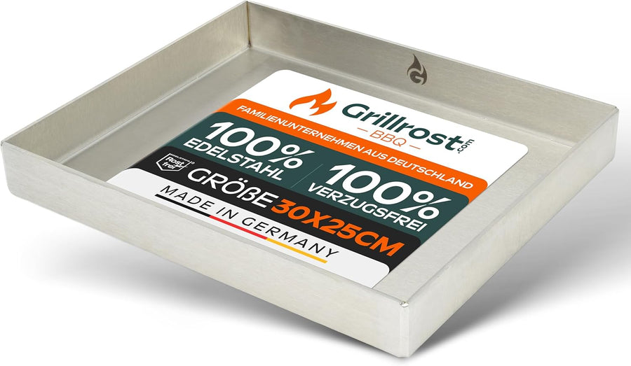 Edelstahl Grillplatte | Plancha | Wanne 30x25cm - Universalgrösse - rundum verschweisst | extra Mass