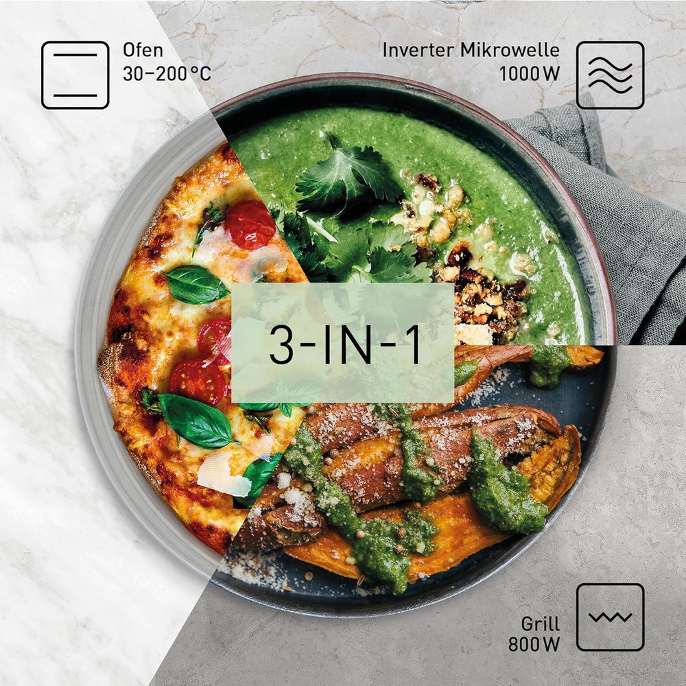 Panasonic NN-DF38PBEPG Kombi-Mikrowelle & Grill, 1000 W, 23 l, Inverter-Tech, Eco Kombi Modus, Flach
