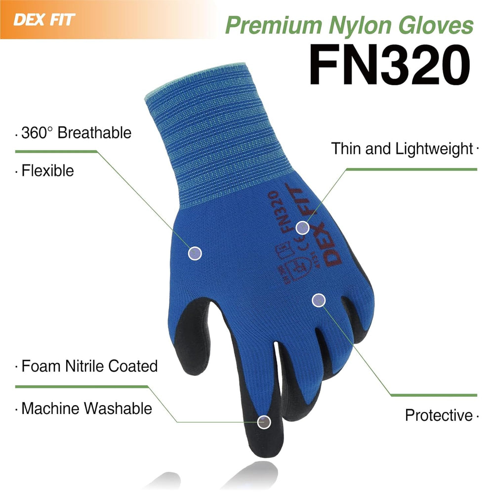 DEX FIT Gartenhandschuhe FN320-12 Paare, 3D Comfort Stretch Fit, rutschfester Handgriff, Strapazierf