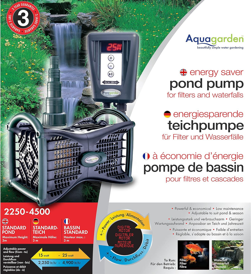 Aquagarden, Sparsame Teichpumpe für Springbrunnen, Wasserfälle und Wasserspiele, Leistung und Wasser