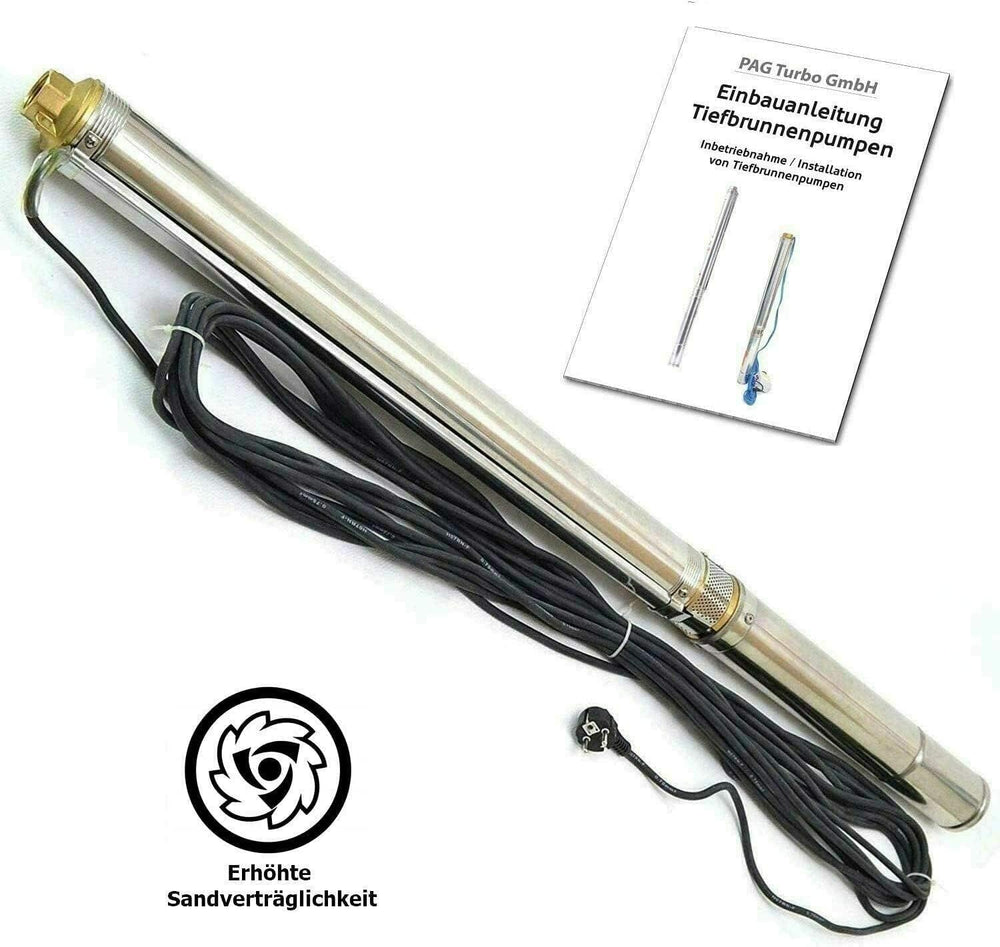 Tiefbrunnenpumpe Brunnenpumpen sandverträglich Edestahl 6300l/h 230V 800 W 90 mm