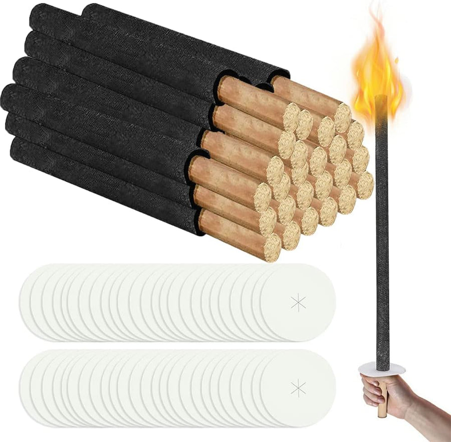 Cecaylie Fackeln Wachsfackeln 150 Stück, Brennzeit 100 min, Garten Fackeln für Draussen aus natürlic