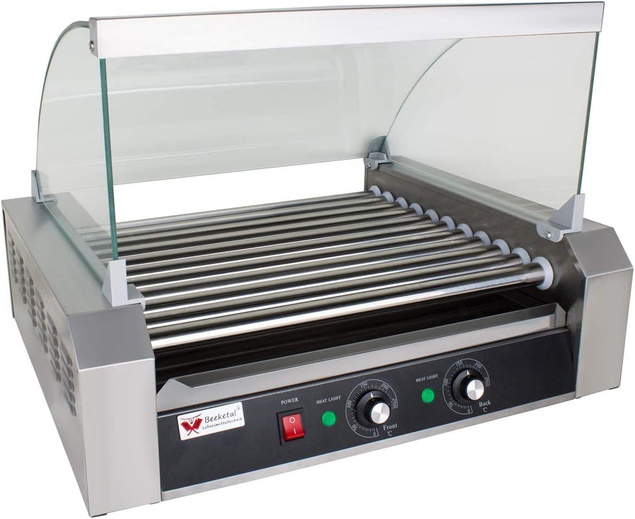 Beeketal 'BH11WG' Profi Hot Dog Grill mit 11 rotierenden Heizstäben, Edelstahl Würstchen Grill Gerät
