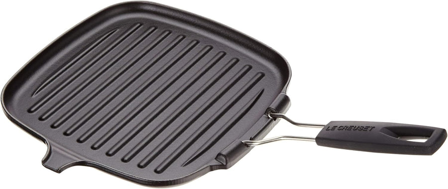 Le Creuset Gusseisen-Grillpfanne, Quadratisch, 24 x 24 cm, Klappbarer Griff, Für alle Herdarten inkl