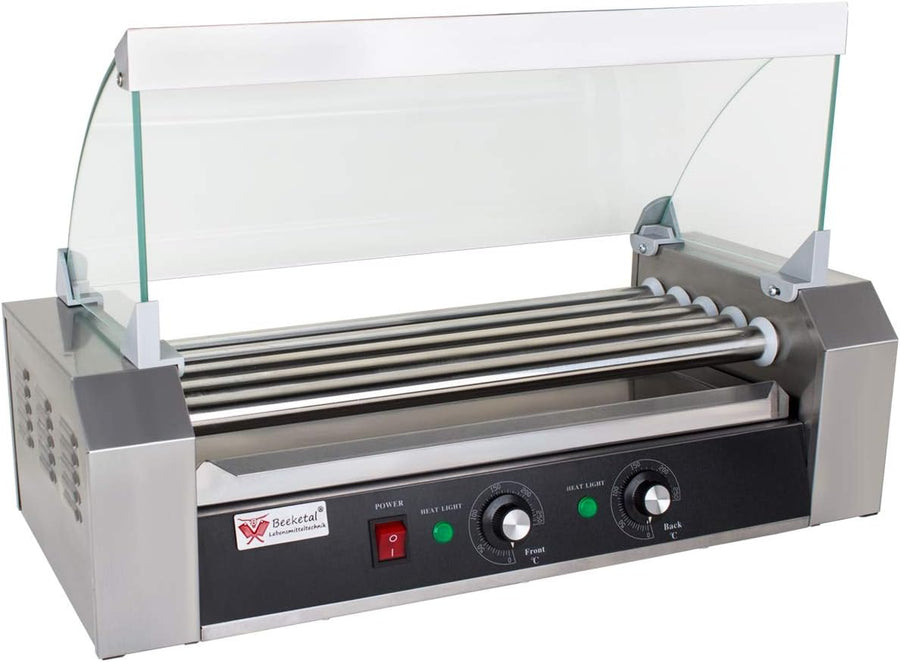 Beeketal 'BH5WG' Profi Hot Dog Grill mit 5 rotierenden Heizstäben, Edelstahl Würstchen Grill Gerät m