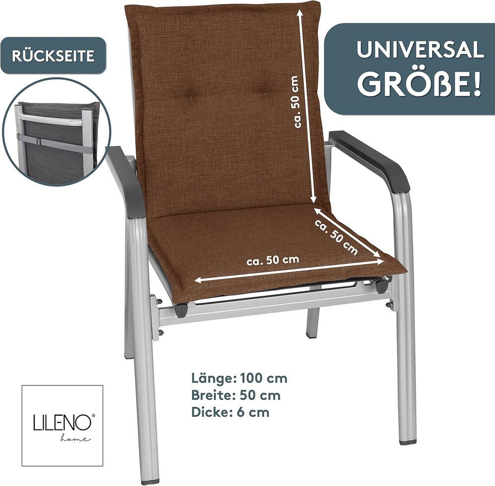 LILENO HOME Gartenstuhl Auflagen als [1er Set - Niedriglehner] in Braun - bequeme Liegen als Sitzauf