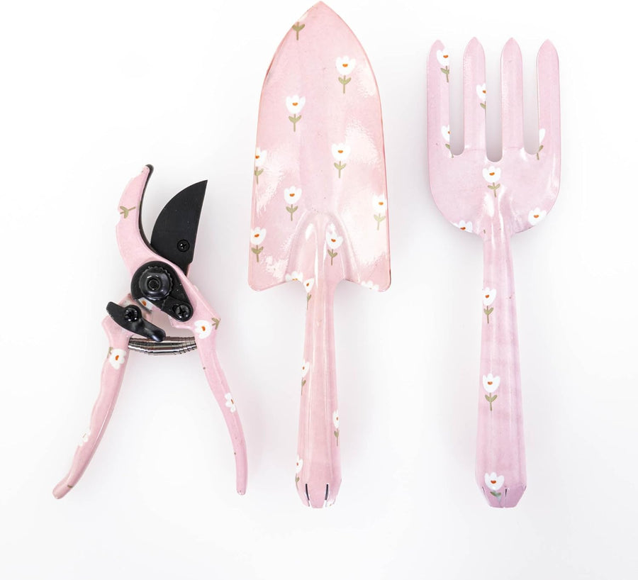 Boltze Gartenwerkzeug Gardenlove (Harke & Schaufel & Zange in Rosa, Wiess, Eisen pulverbeschichtet,