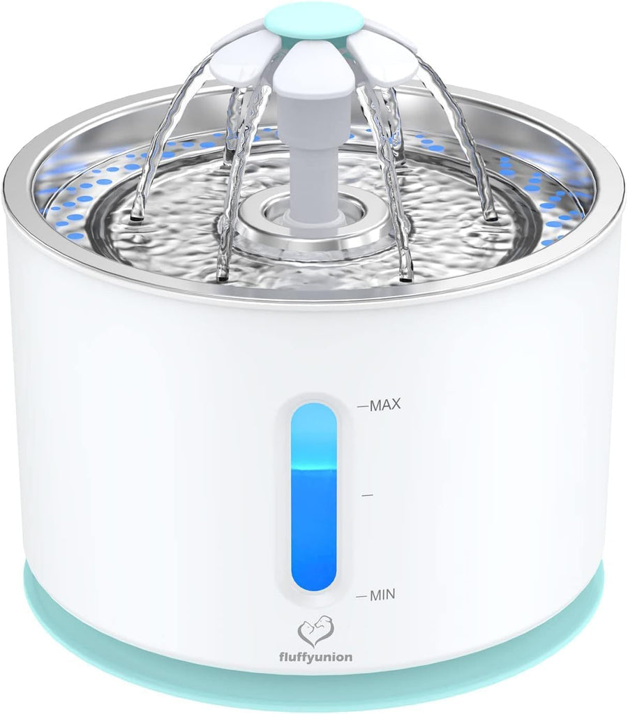 FluffyUnion türkis Trinkbrunnen für Katze und Hunde 2.4L Deckel aus Edelstahl