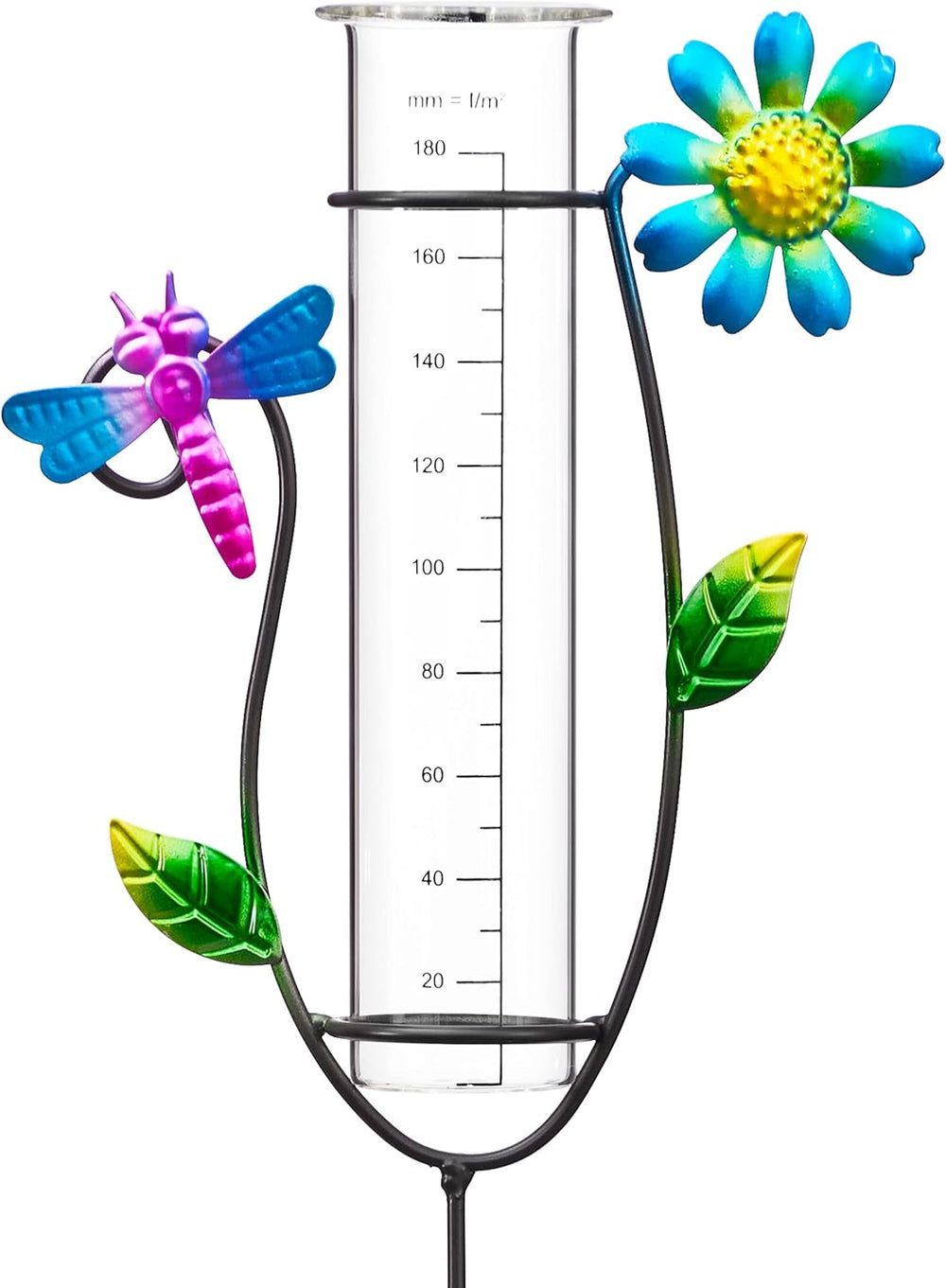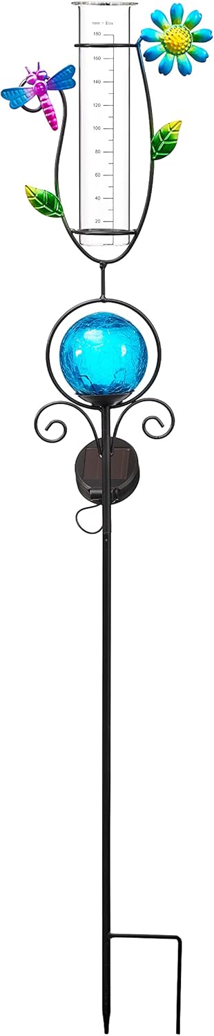Bonetti Regenmesser mit LED Beleuchtung für den Garten, 2-in-1 Funktion, Metall-Erdspiess, farbige G