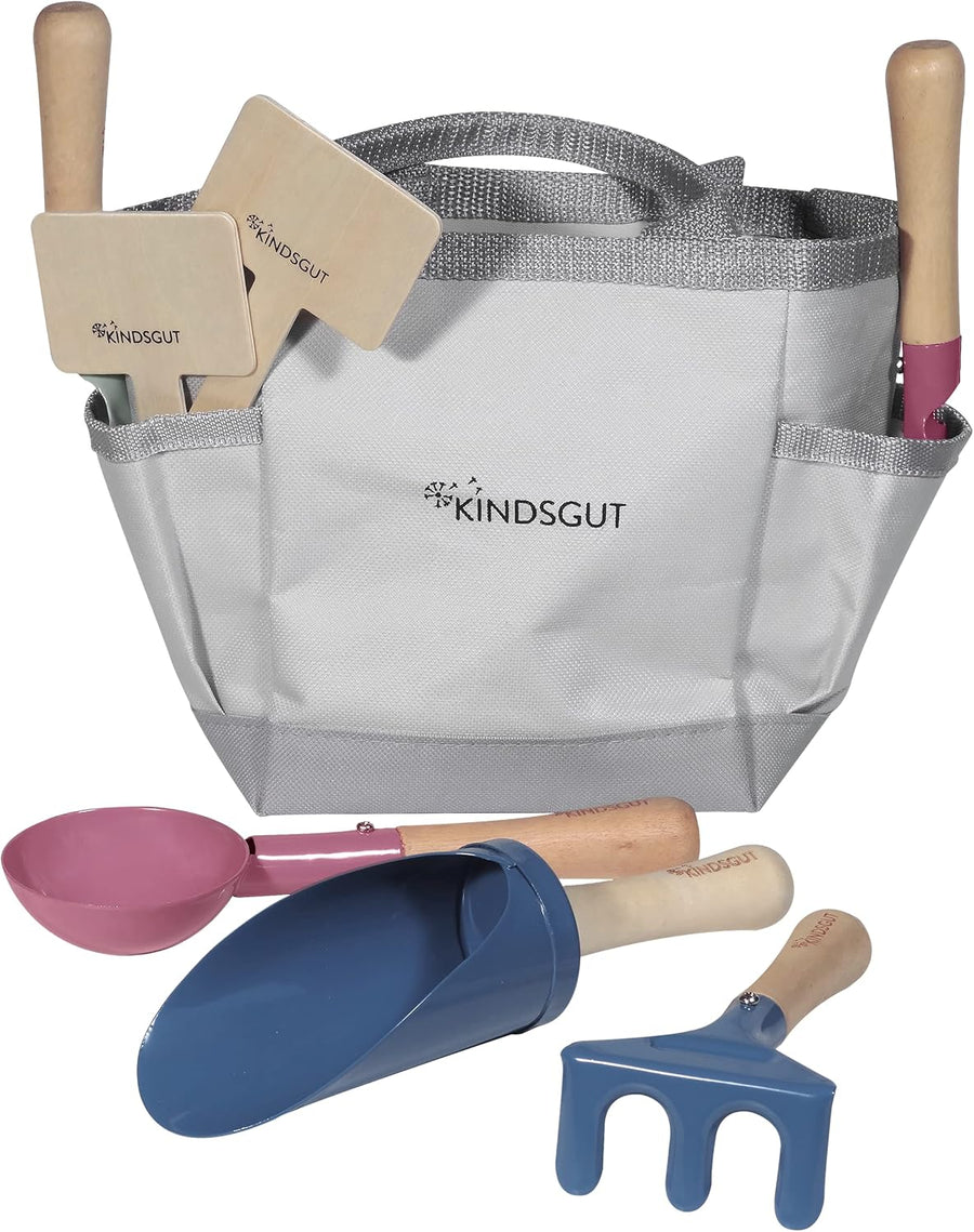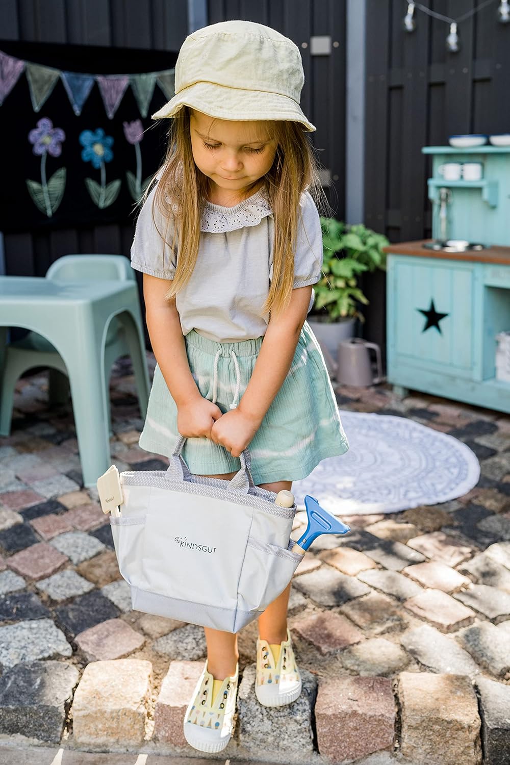 Kindsgut Gartenset, Gartengeräte für Kinder aus hochwertigem Holz und Metall in Einer Tasche, Schlic
