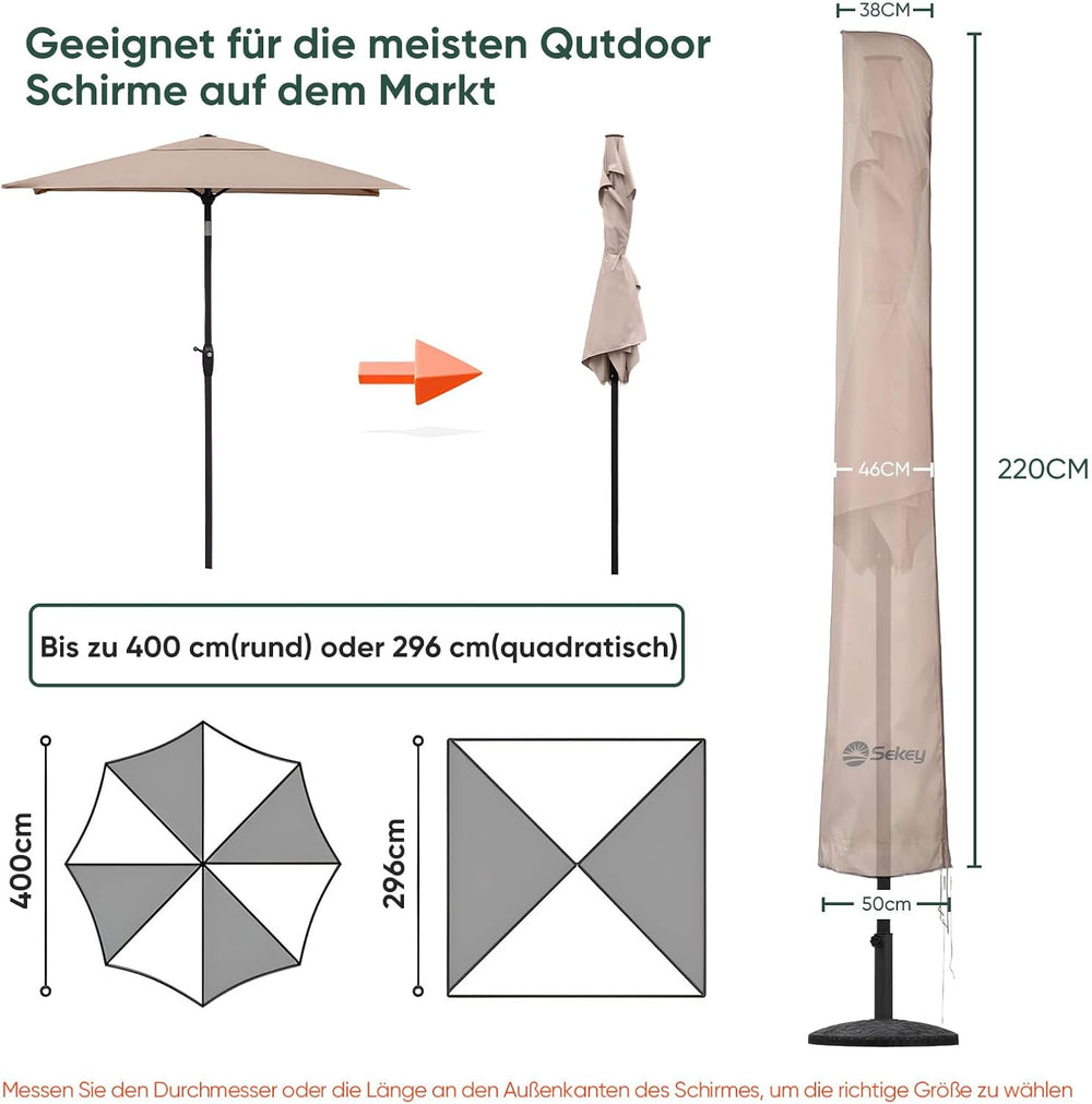 Sekey Sonnenschirm Schutzhülle mit Stab, Abdeckhauben für Ø 350cm / 200x300cm Gartenschirm , Abdecku