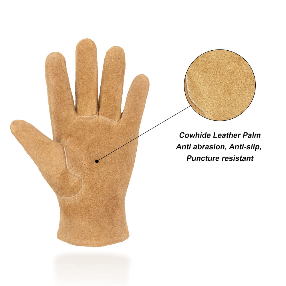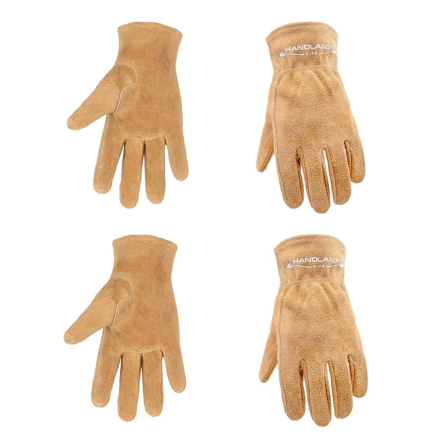 HLDD HANDLANDY Kinder Leder Arbeitshandschuhe, 2 Paar Kinder Gartenarbeitshandschuhe, Kinder Rindsle