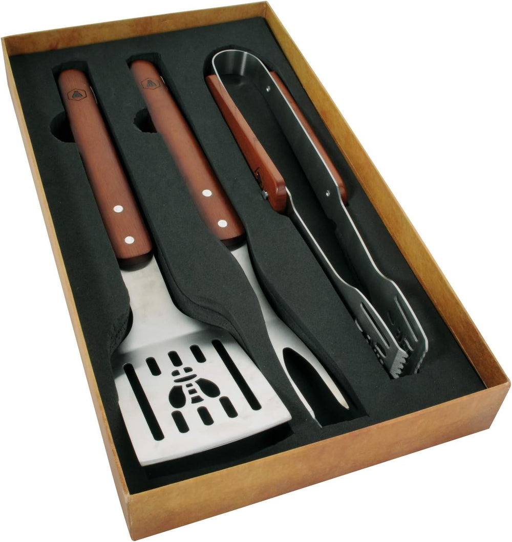LAGUIOLE - Grillset 3 praktische Utensilien - Spatel - Gabel - Klemme - Edelstahl, Holz - Geschenkbo