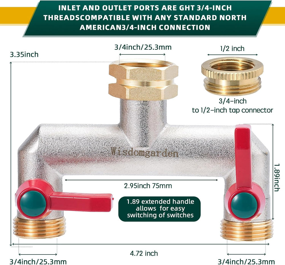 Wisdomgarden Wasserverteiler 2fach, Schwere Vernickelt Messing gartenschlauch verteiler, 2 wege vert