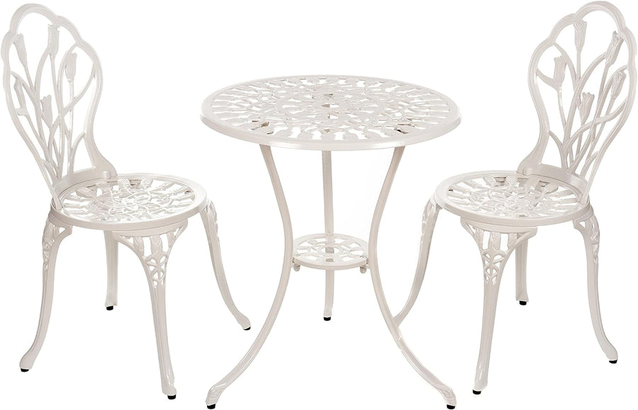 Tisch Set 152405C1551 stabiles Gartenmöbel Set Balkonset Bistroset Aluminium Guss (Weiss), Weiss