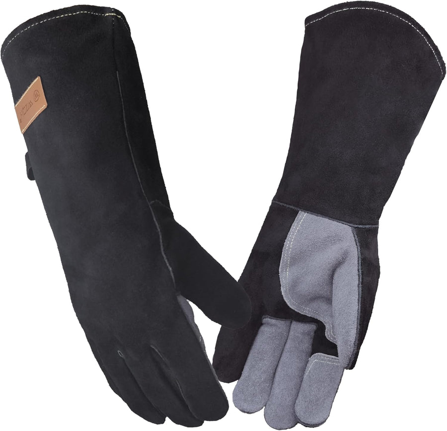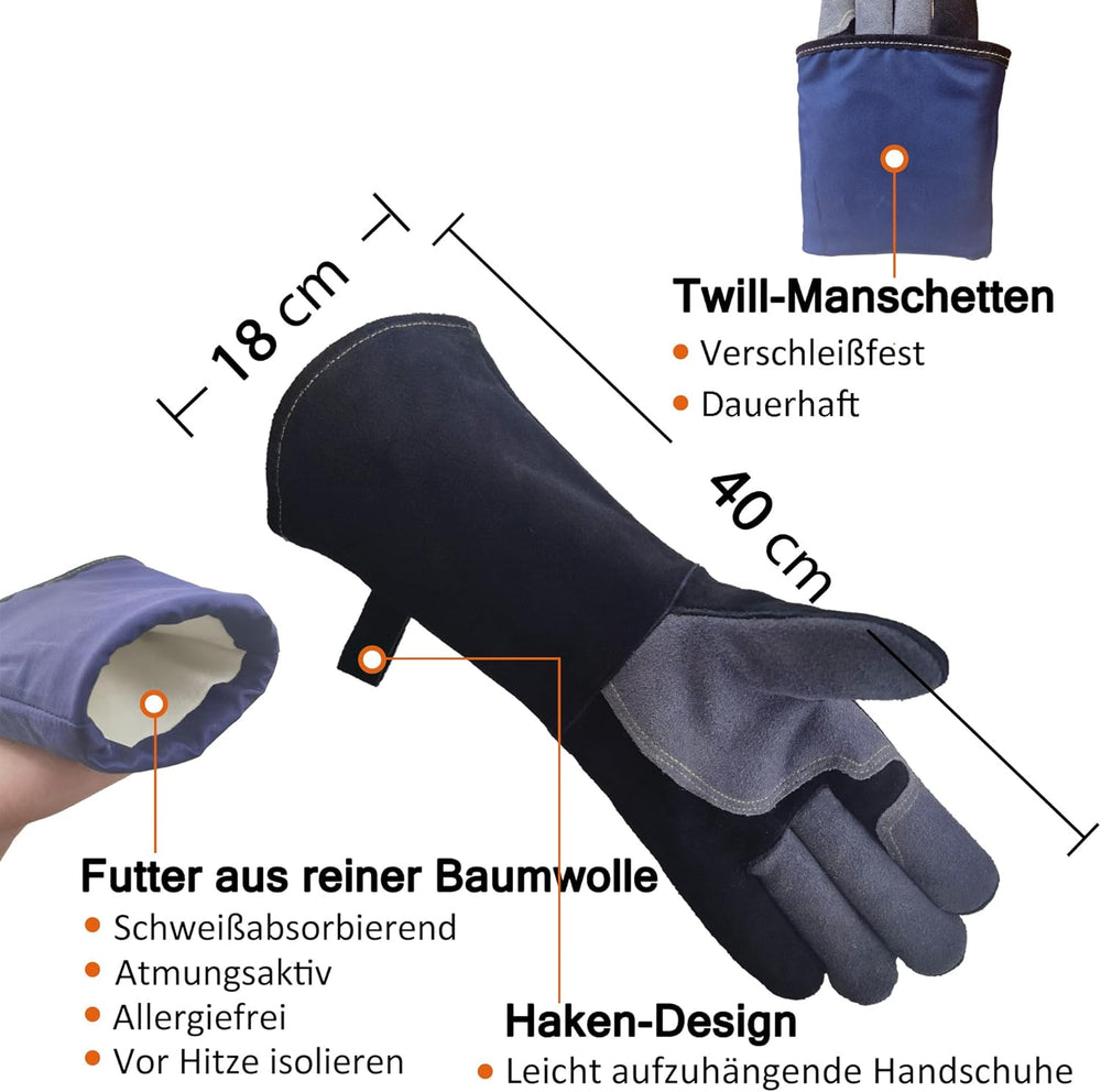 WZQH 40 cm, Leder Grillhandschuhe, Feuerfester Hitzebeständige Mitts für Schweissen, Feuerwehr, Kami