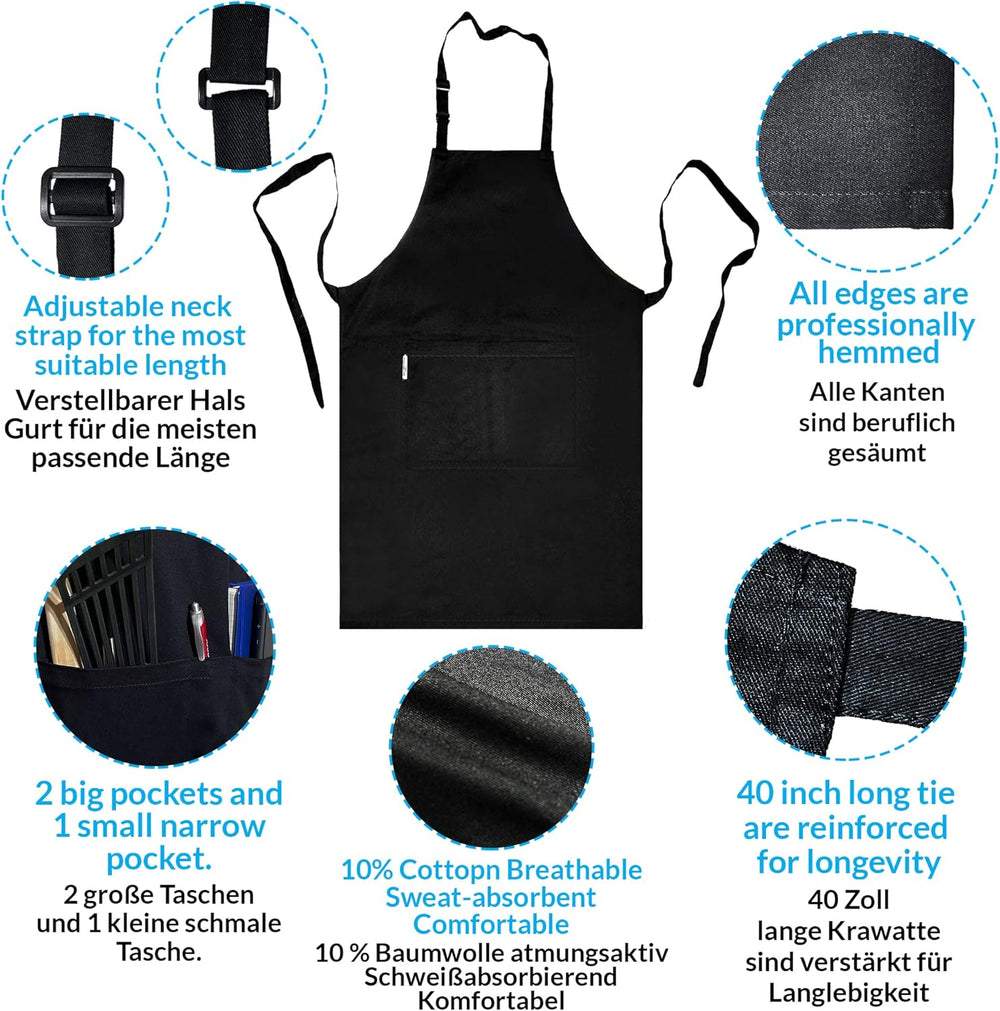 LEFUNDA® Kochschürze Wasserdicht Schürze mit 3 Taschen Verstellbare Grillschürze mit langen Bändern