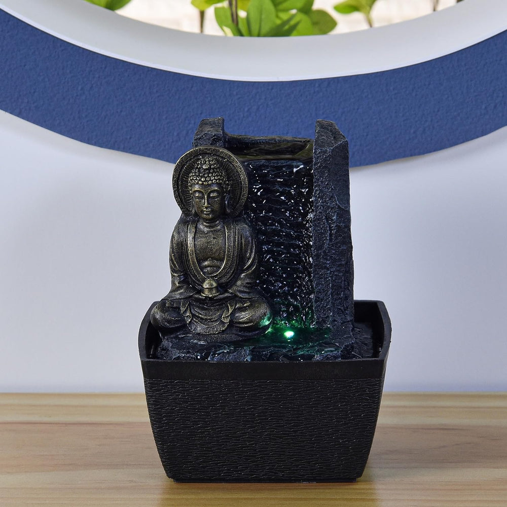 Zen'Light - Zimmerbrunnen Buddha Harmonie - Wasserbrunnen mit geräuschloser Pumpe - LED-Brunnen mit