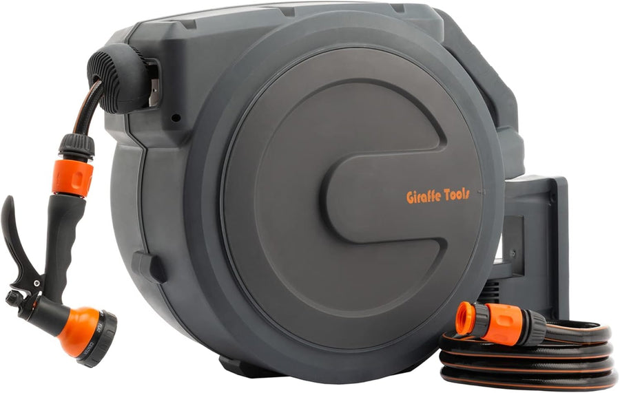 Giraffe Tools Schlauchtrommel Wandmontage 25m+2m, Automatik Gartenschlauch Aufroller 180° Schwenkbar