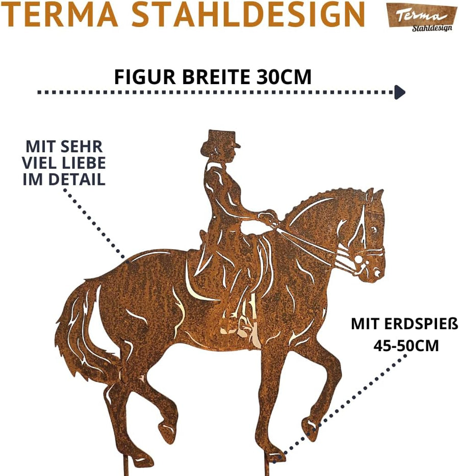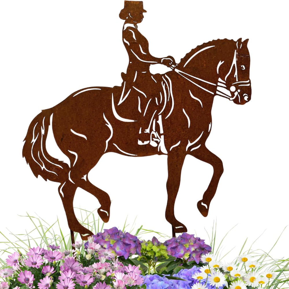Edelrost Gartenstecker Pferd Dressurreiter, Handmade Germany, tolle gartendeko aus Rost-Metall, deko
