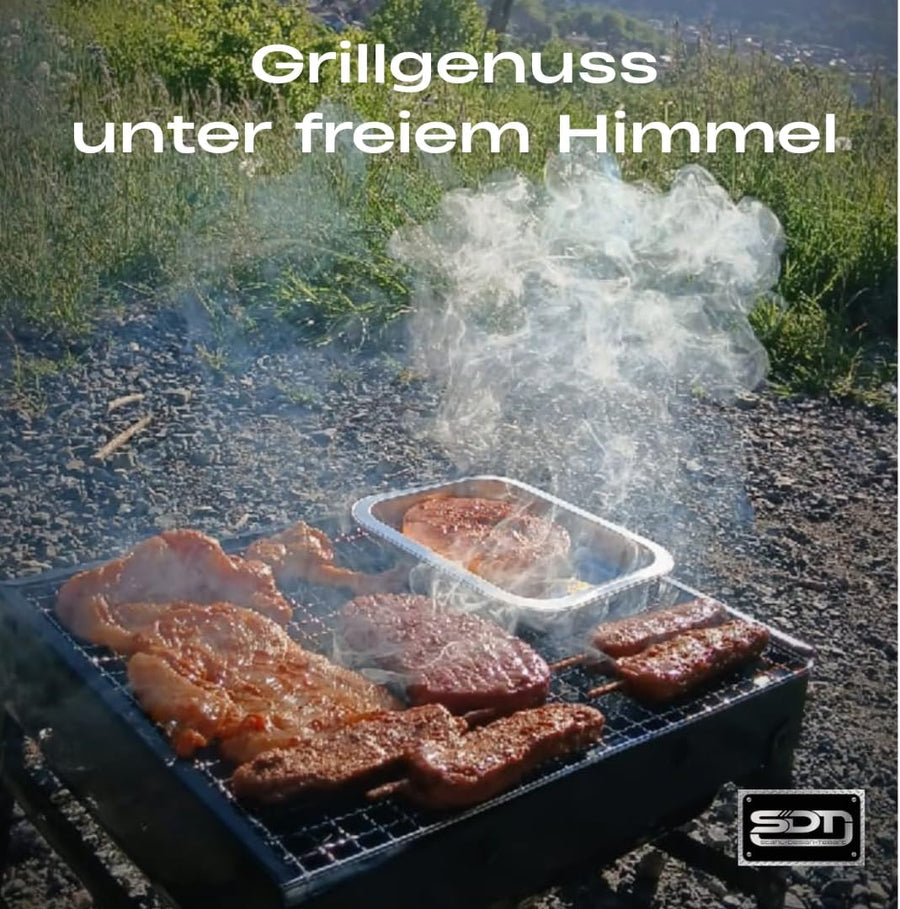 Kompakter Grill mit Griff – Vielseitiger und mobiler Holzkohlegrill mit entnehmbarem Ascheauffangbeh