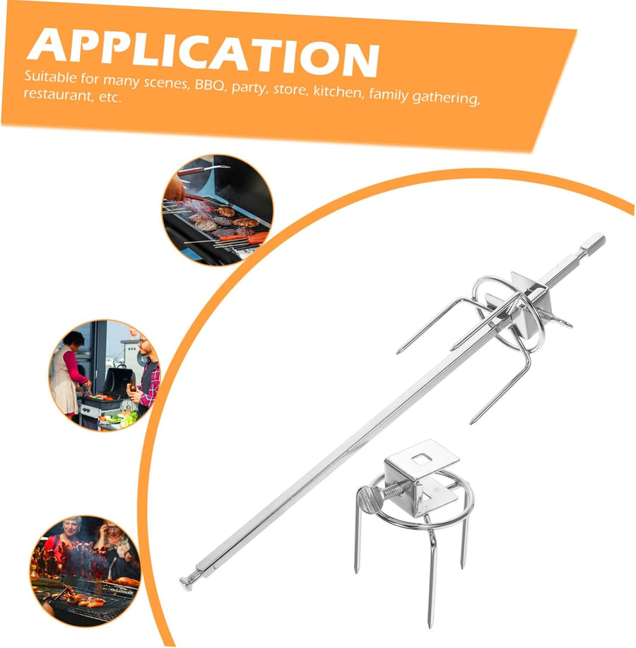 ANDRESLAD 1Satz Edelstahl Drehspiess Set für Grill und BBQ Rotisserie für Hähnchen Fisch und Fleisch