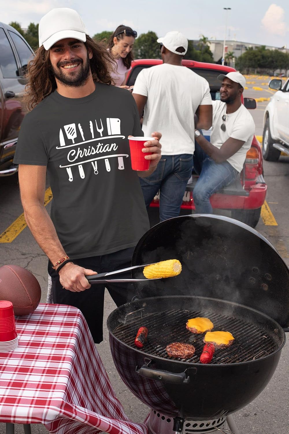 Herren T-Shirt Grillen personalisiert eigener Name Grillbesteck Geburtstag Geschenk für Männer, S