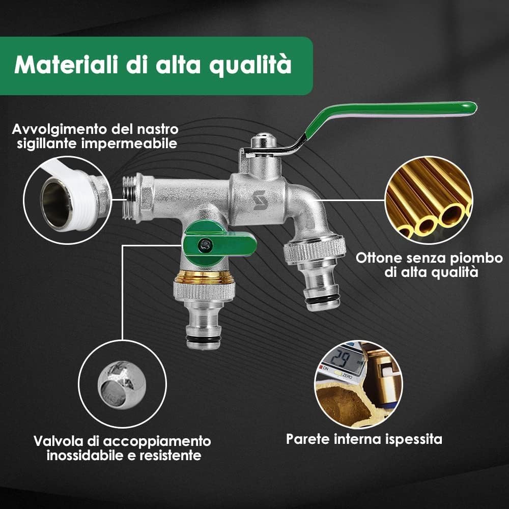 SPGOOD Premium Garten Wasserhahn, 1/2 Doppel Messing Wasserhahn Rost- + mit 2 Schlauchanschlüsse + 1