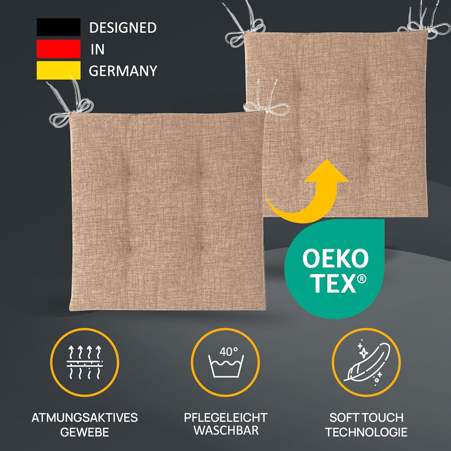 LILENO HOME 2er Set Stuhlkissen Hellbraun (40x40x4,5 cm) - Sitzkissen für Gartenstuhl, Küche oder Es