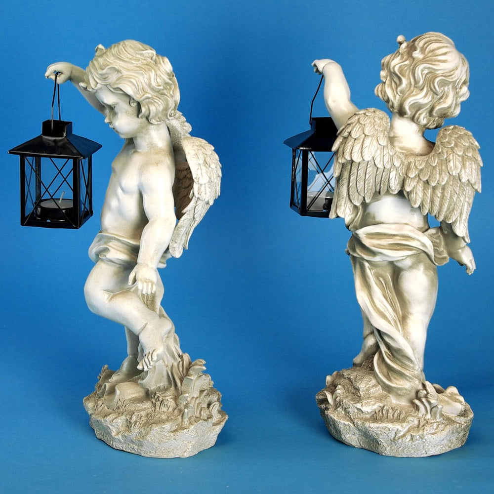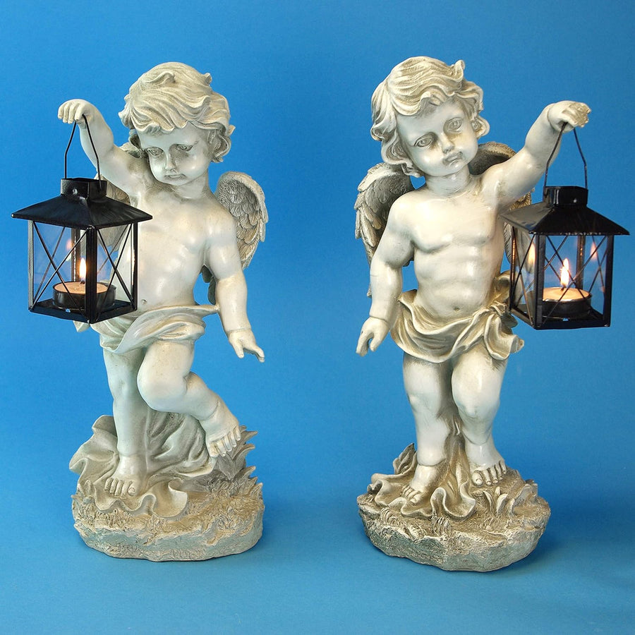GeKi Trend 2er Set Engel Figuren mit Laterne Dekofigur Putte frostfest Gartendeko antik weiss Grabsc