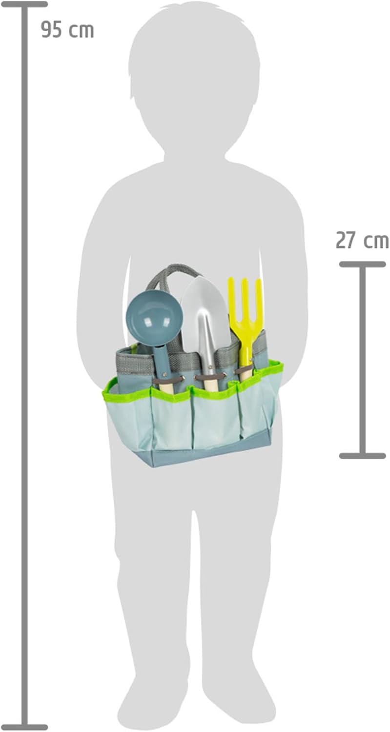 small foot Gartentasche mit Gartenwerkzeug aus Holz und Metall, Gartenspielzeug für Kinder ab 3 Jahr
