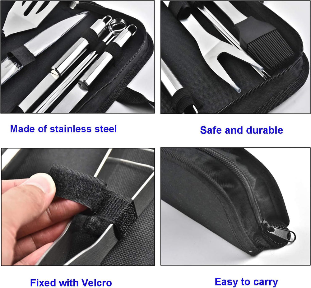 Grillbesteck-Set 11-TLG. 34 cm, Edelstahl, Grillzubehör mit Grillzange, Grillgabel, Tragbare Grillko