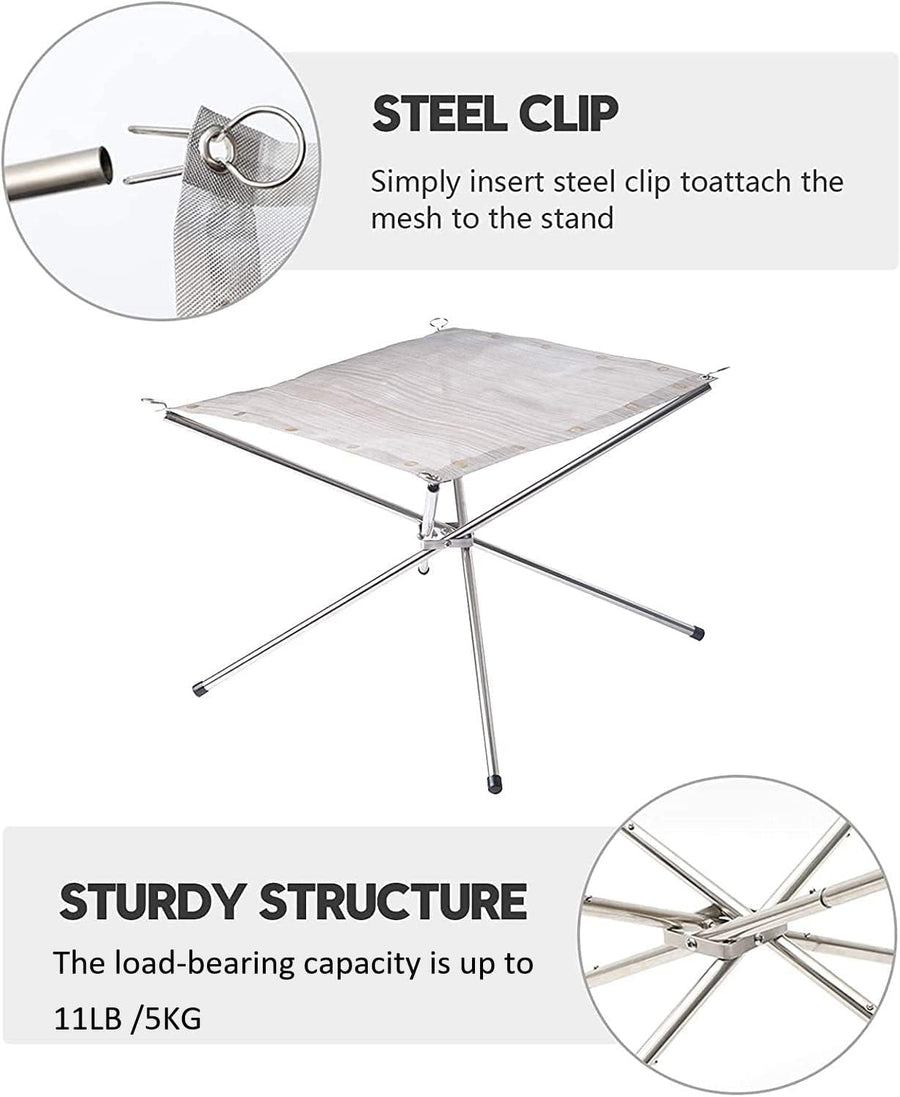 KAHEIGN Tragbare Feuerstelle für Aussen, 42cm Faltbare Edelstahlgeflecht Feuerstelle Grill-Feuerscha