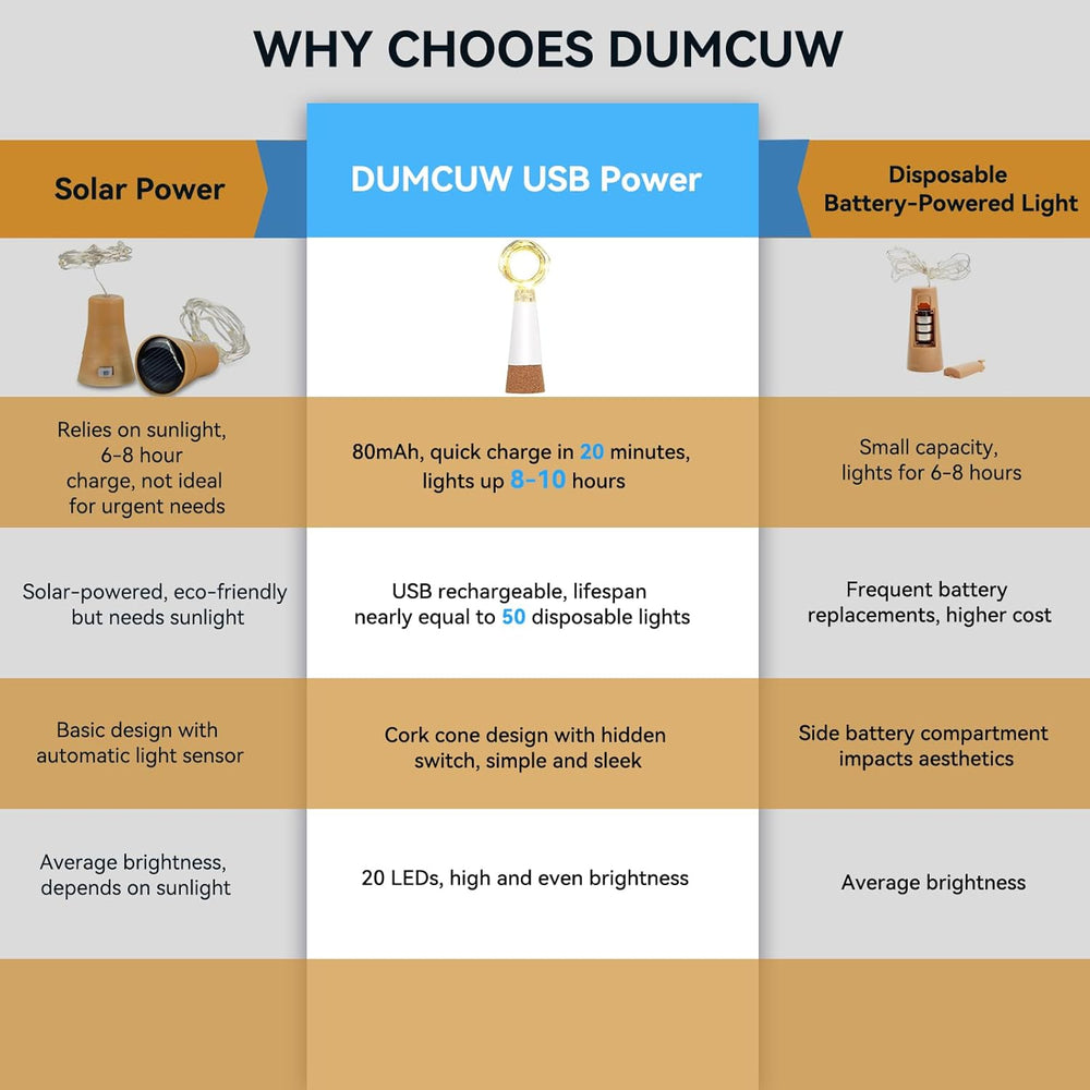 Dumcuw LED Kork Flaschenlichter, Wasserdicht Kupferdraht Lichterkette für Flaschen, USB Powered Wied