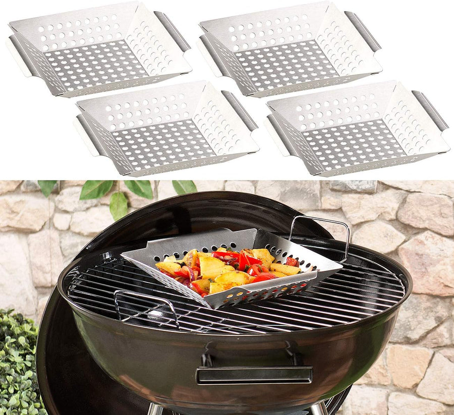 Rosenstein & Söhne Grillschale: 4er-Set Edelstahl-Grill-Schalen für Gemüse und kleines Grillgut, 1 m